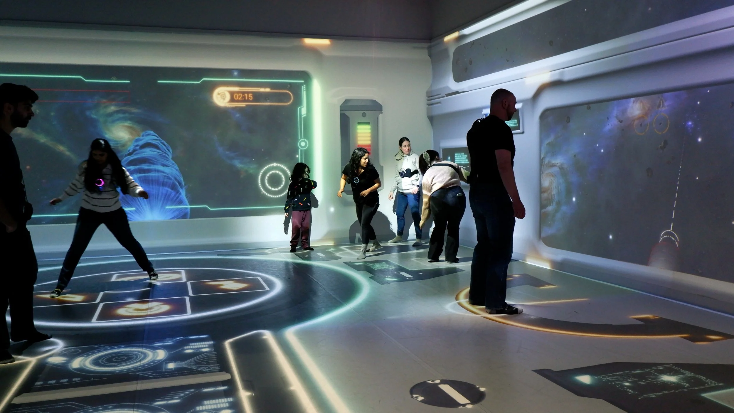 Maziart Inc. is proud to present, “To The Stars”, an interactive, full-body escape game experience set aboard a futuristic spaceship. This one-of-a-kind, digitally immersive journey blends cutting-edge technology, motion tracking, and haptic feedback to transport participants to the far reaches of the universe.
